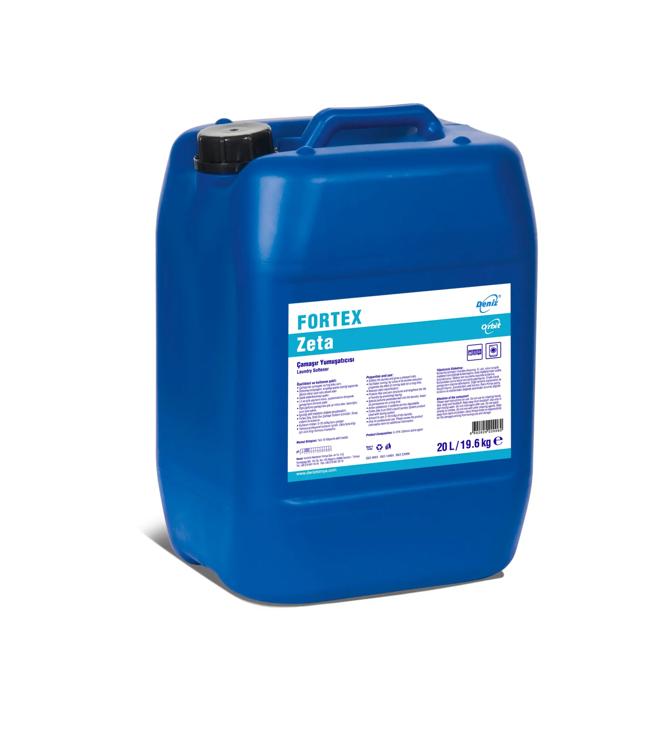 Çamaşırları yumuşatır ve hoş koku verir. Ütülemeyi kolaylaştırır, kırışıklığı azaltıcı özelliği sayesinde ütünün etkisi uzun süre devam eder. Statik elektriklenmeyi azaltır. Lif ve iplik yapısını korur, yıpranmalarını önleyerek çamaşırların ömrünü uzatır. Özel parfümü çamaşırlara çok iyi nüfuz eder, kalıcılığını uzun süre saklar. İçerdiği aktif maddeler doğada biyolojik olarak parçalanabilir. Fortex Zeta, Orbit Sıvı Çamaşır Sistemi ürünüdür. Dozaj sistemi ile kullanılır.
